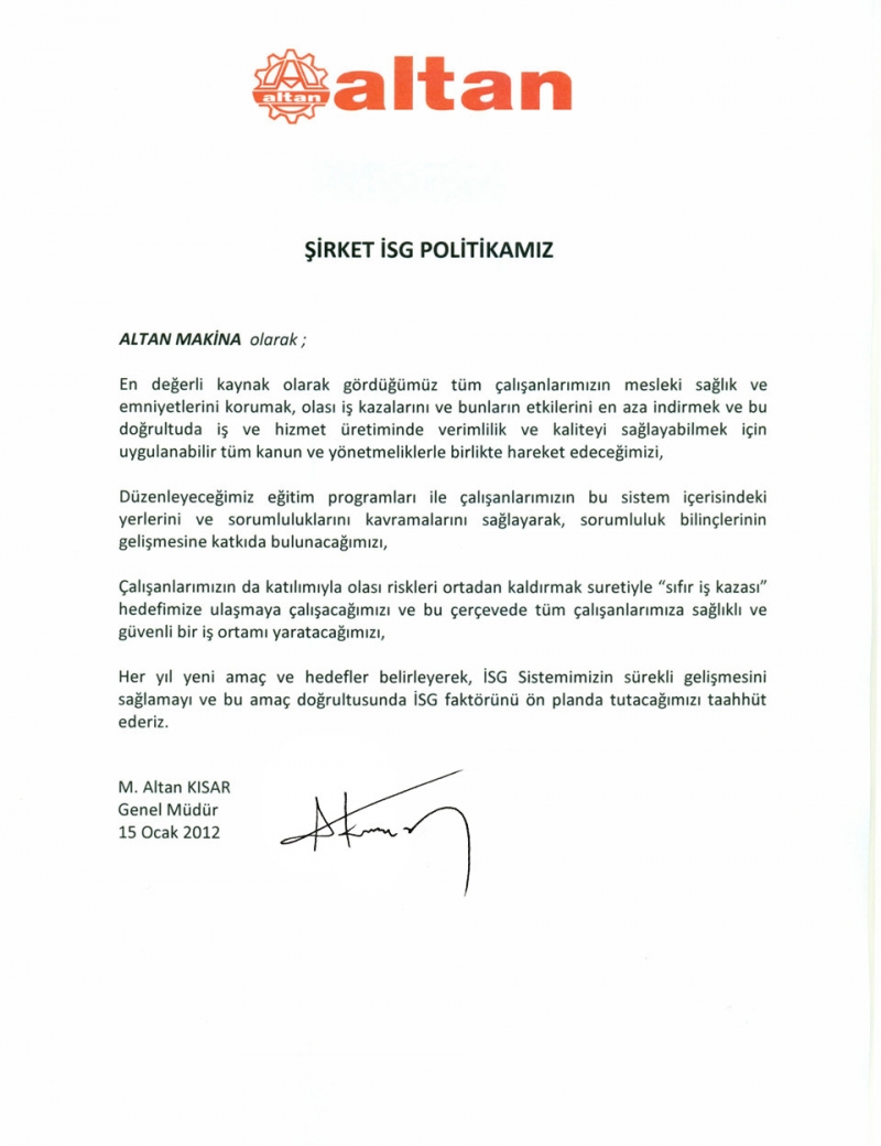 İSG POLİTİKAMIZ